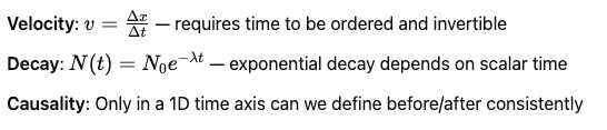 In one dimension, only addition and inversion are well-defined operations — and that’s exactly what time supports.