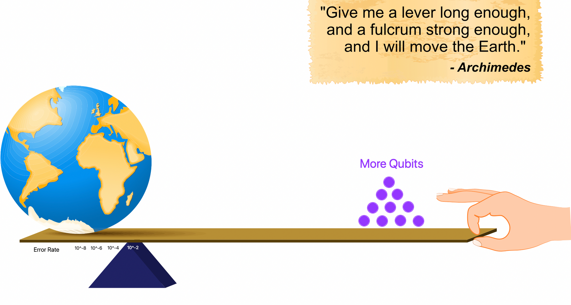 I imagine the Error Rate in quantum machines to be something akin to a Fulcrum placed between Archimedes and Massive Computation.
