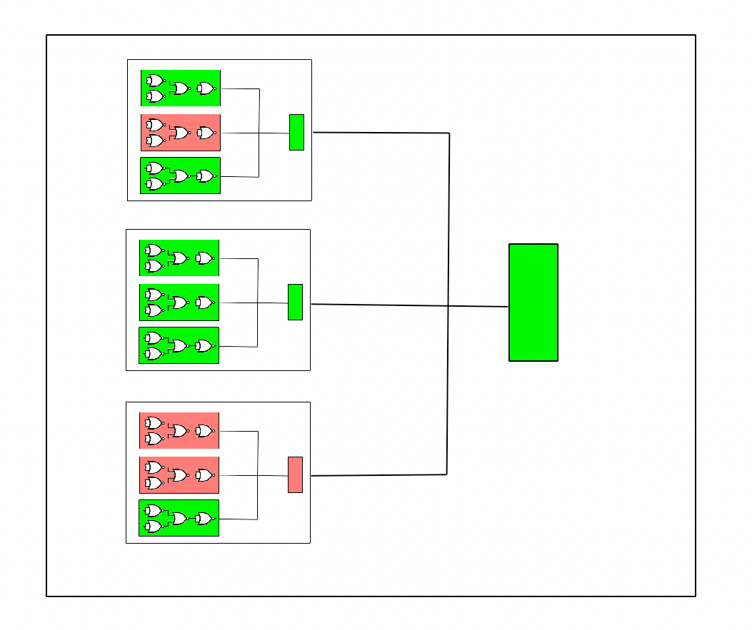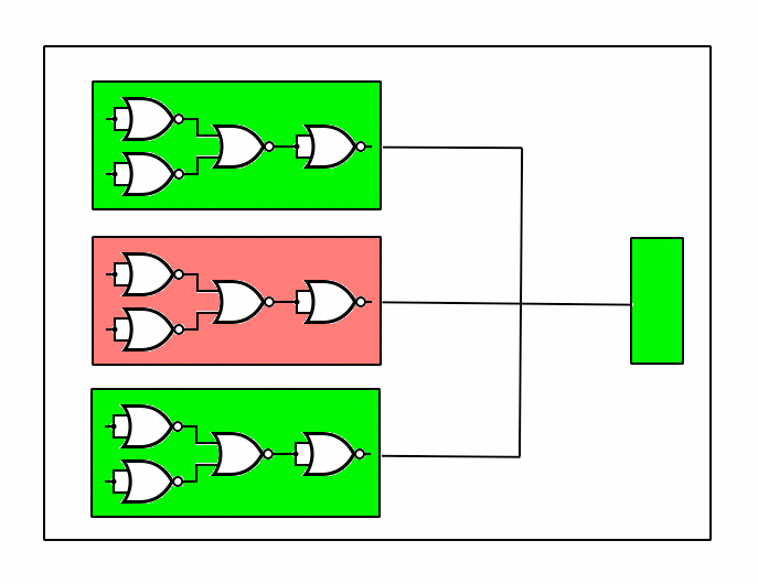 As the complexity of the circuit grows and errors increase, soon another layer of 2-of-3 voting is needed.