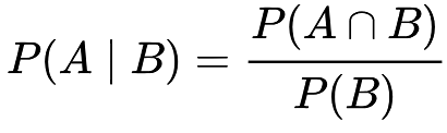 To put it more specifically, the probability of Event A occurring, given that Event B occurred is equal to Both Events occurring, divided by the probability of Event B occurring.