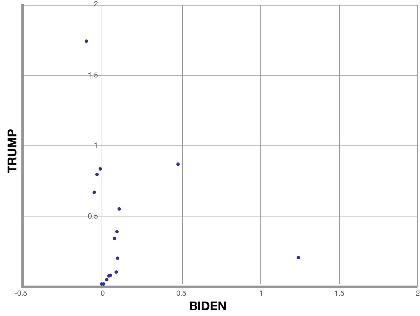 Note that this bet does not have a positive expected value in both axes. But the value in the Trump scenario is positive enough to overcome a small negative value in Biden and still have the best net characteristics.